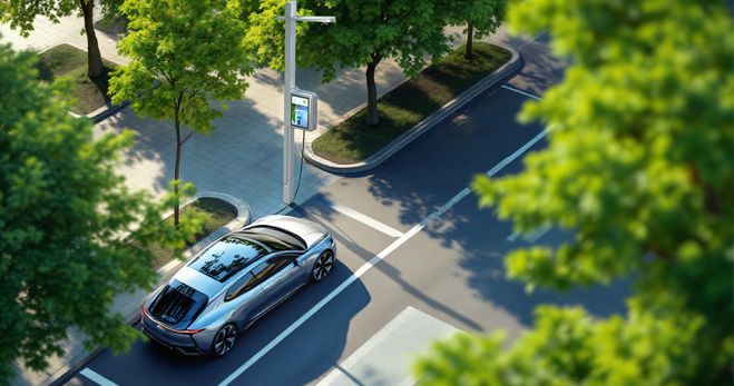 Rocking Lin Xiao Light-Mounted AC Charger。Integrated charging systems incorporated into streetlights or urban lighting poles, enabling efficient public charging without additional infrastructure.